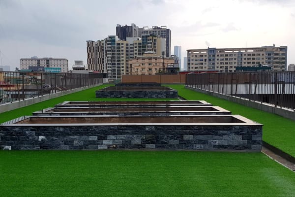 trải cỏ nhân tạo tại sân thượng