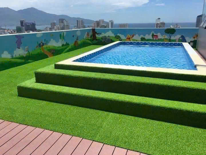Cỏ nhân tạo sân vườn cao cấp được trải trên sân thượng – Dòng cỏ nhân tạo có giá thành cao theo yêu cầu của khách hàng