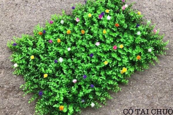 Cỏ tai chuột nhựa điểm hoa là một loại cỏ trang trí làm từ nhựa PE cao cấp, mô phỏng theo hình dạng cỏ thật với phần lá nhỏ như tai chuột và được điểm xuyết các bông hoa nhỏ xinh, tạo cảm giác tự nhiên, sinh động. Loại cỏ này thường được kết thành thảm hoặc tấm trang trí, sử dụng rộng rãi trong không gian nội thất, sân vườn, ban công, quán café, backdrop chụp hình…