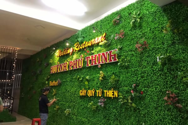 Cỏ xoong nhựa là một trong những loại được sử dụng nhiều trong thiết kế vách cây giả.
