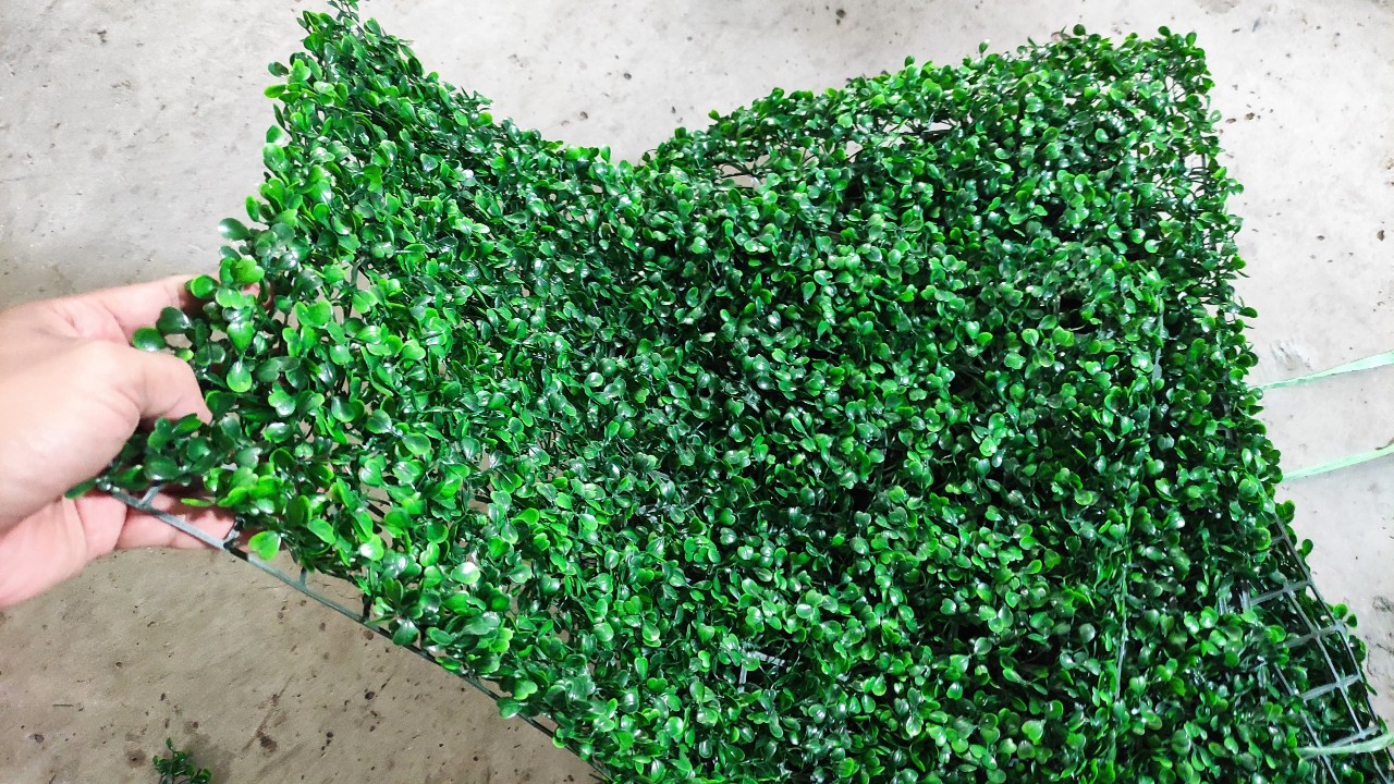Cỏ xoong nhựa là một trong những loại được sử dụng nhiều trong thiết kế vách cây giả.
